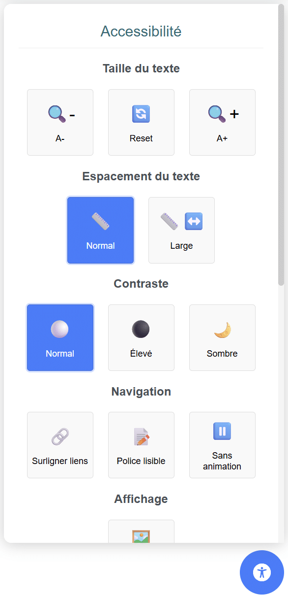 Découvrez le widget d’accessibilité que j’ai développé, une solution complète pour rendre votre site web plus inclusif et convivial pour tous les utilisateurs.